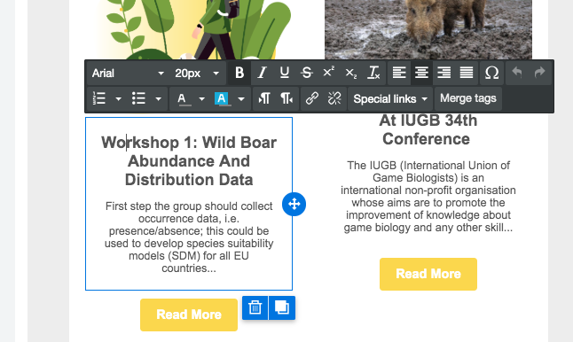 Para editar el texto, tenemos que pulsar en el mismo y sustituirlo por lo que queramos. Los estilos del texto se encuentran en la barra justo encima del mismo. Ahí podremos cambiar el color, tamaño y tipo de fuente, la alineación….